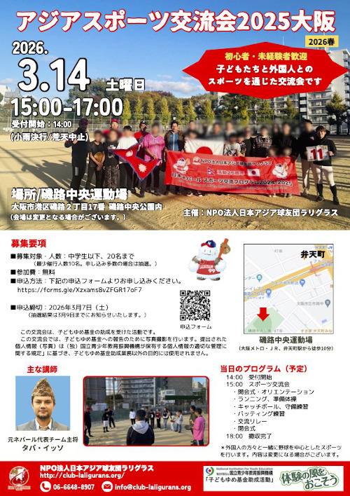 既にご案内のとおり、当団では来たる3月14日に「アジアスポーツ交流会」の開催を予定しておりますが、本件に関して、ご連絡がございます。
